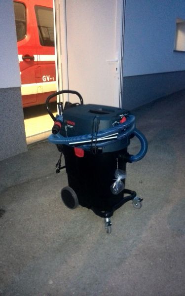 Po sestanku smo izvedli redni pregled opreme in preizkusili tudi novo pridobitev - Boschev suho/mokri sesalec GAS 55 M AFC, ki ga bomo uporabljali pri posredovanjih ob poplavah v stanovanjskih objektih.